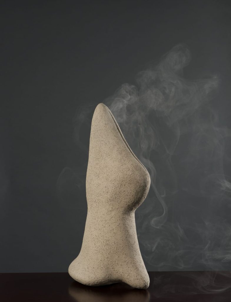 Mes « sculptures de fumée », par exemple, inspirées en partie par les vases rituels et les traditions d’encens des monts Métallifères, invitent à une expérience multi-sensorielle. Elles unissent fonction, forme et parfum dans des œuvres d’art contemporaines qui ouvrent des espaces de mémoire.