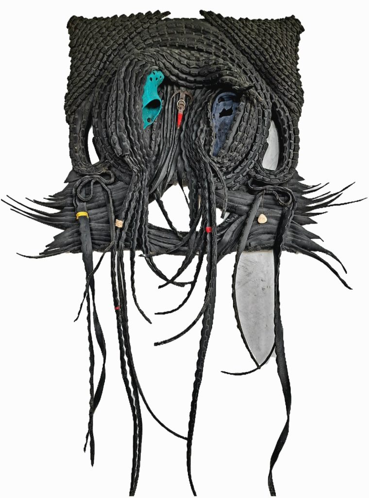 Au fil du temps, j’ai développé une approche personnelle du matériau, jouant avec ses motifs pour créer des masques et des sculptures monumentales. Aujourd’hui, j’ai affiné ma technique et évolué vers des formes plus abstraites, notamment dans mes masques. De même, mes peintures sont devenues le reflet de ma démarche artistique en sculpture.