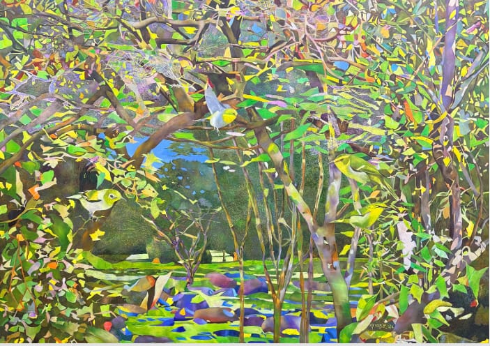 Ibrahim Balayara : Toutes les œuvres que j’ai créées sont très expressives mais si je dois choisir, je propose « Protection de la Nature ». Pour bien vous l’expliquer, je tiens à préciser qu’il y a trois choses qui sont récurrentes dans mes toiles : les immeubles, les femmes et l’environnement. Les immeubles parce que la première fois où j’ai mis pied à Dakar, j’ai eu l’impression que les gens vivent en prison car il y a tout plein d’immeubles mais vraiment pas leurs intérieurs sont sans âme. On vient pour dormir et repartir le lendemain travailler. C’est pourquoi dans mes œuvres j’insiste toujours sur ces immeubles afin qu’on puisse installer des espaces verts dans la ville ou au mieux la décongestionner vers d’autres villes. La femme parce que dans nos sociétés actuelles, on ne prend pas en compte la femme dans nos politiques de développement. Ce sont les hommes qui s’accaparent tout et il faut que ça change. Enfin, on sait tous qu’un environnement sain est source de satisfaction. Il améliore le bien-être mental, et permet à chacun de se remettre du stress de la vie quotidienne et de vivre bien.
