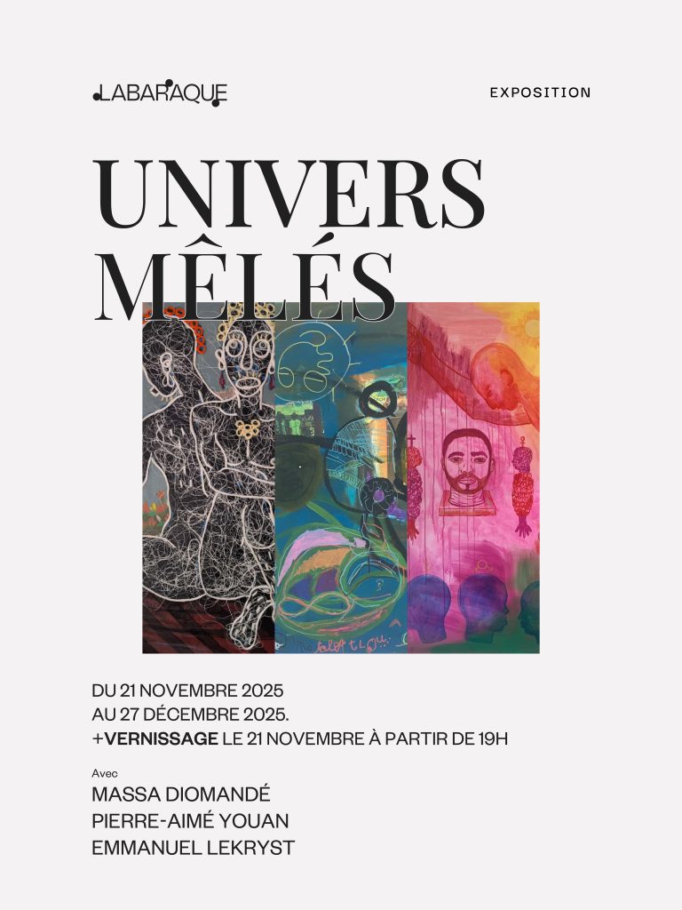 Jusqu’au 27 décembre, Labaraque Gallery accueille l’exposition collective « Univers Mêlés » avec les artistes ivoiriens Emmanuel LEKRYST, Pierre-Aimé YOUAN et Massa Diomandé.