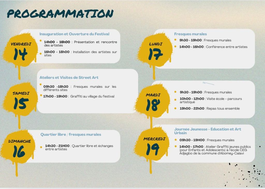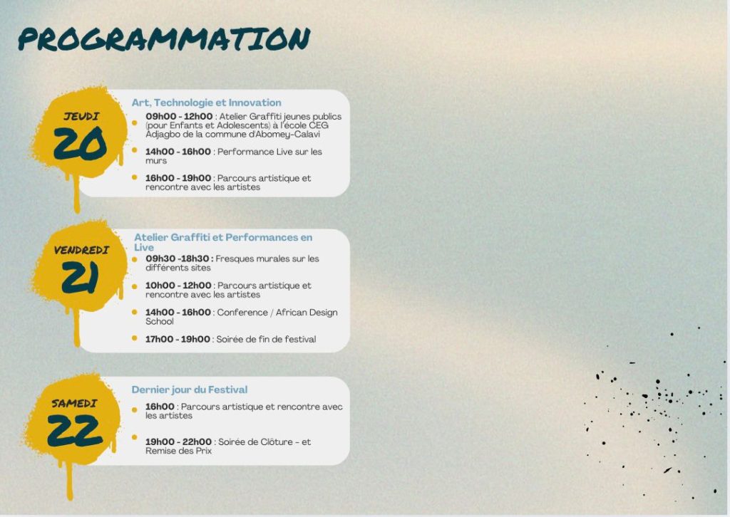 Fondée en 2013 par l’Association ASSART, EFFET GRAFF tient sa 9ème édition depuis ce 14 novembre dans la ville de Cotonou. Elle s’y poursuivra jusqu’au 22 novembre sous le thème «Échos de liberté».